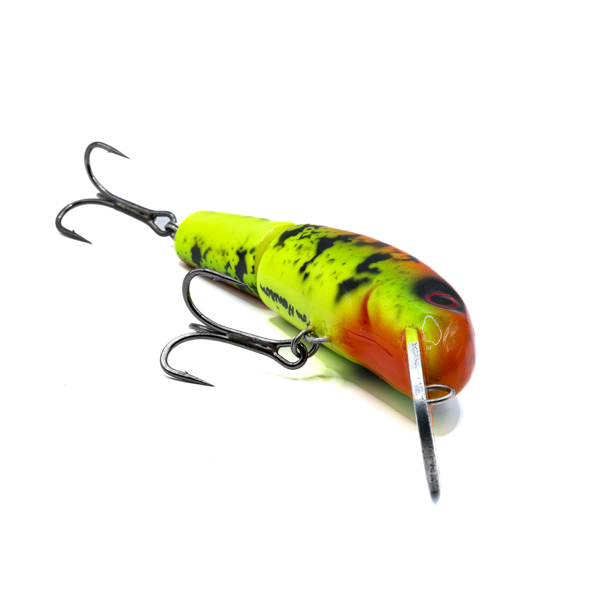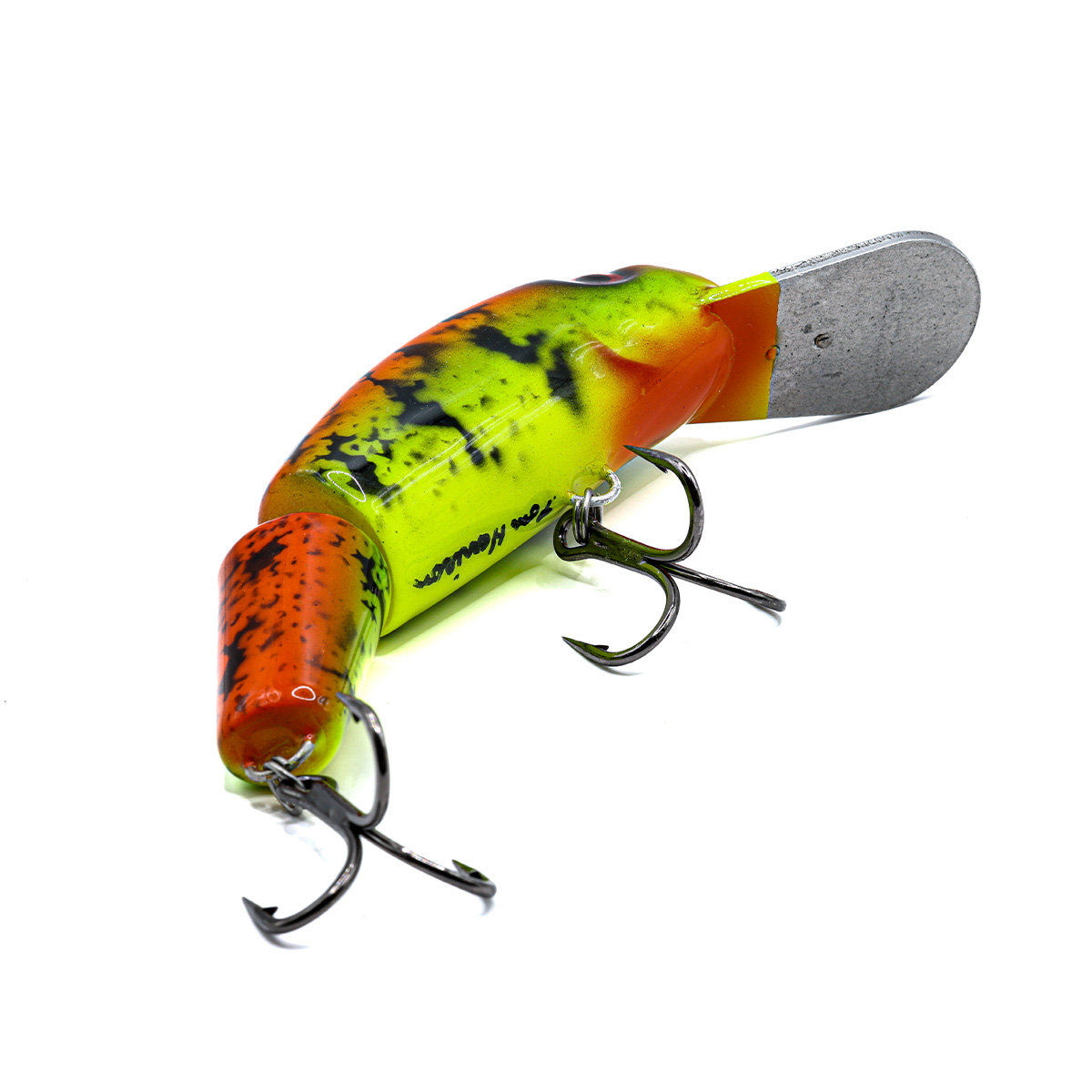 Developed for anglers in Green Bay fishing in Lake Michigan, this crank bait has traveled throughout the Midwest and is the perfect companion for traveling anglers. The 5.5″ Jointed Baby Chad is like any other bait; it’s been tested to have success in rivers and lakes alike, due to the natural movement it allows for easy workability. With its small 5.5″ body size, it’s able to help catch those pesky muskies and fit perfectly in any angler’s tackle box.