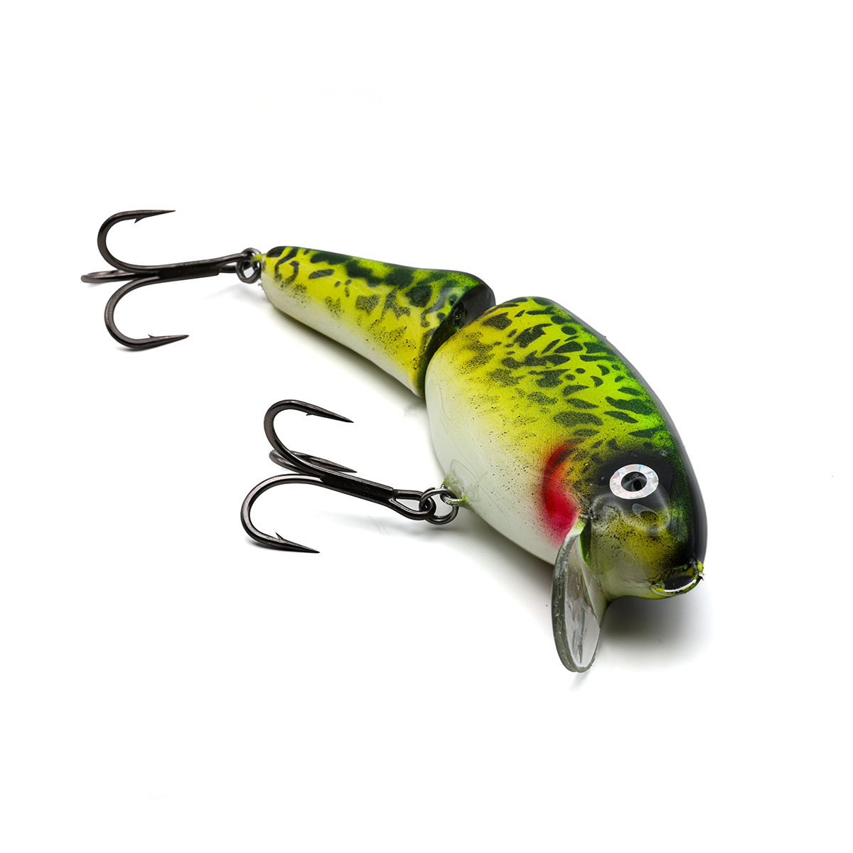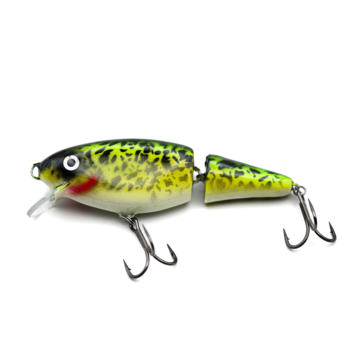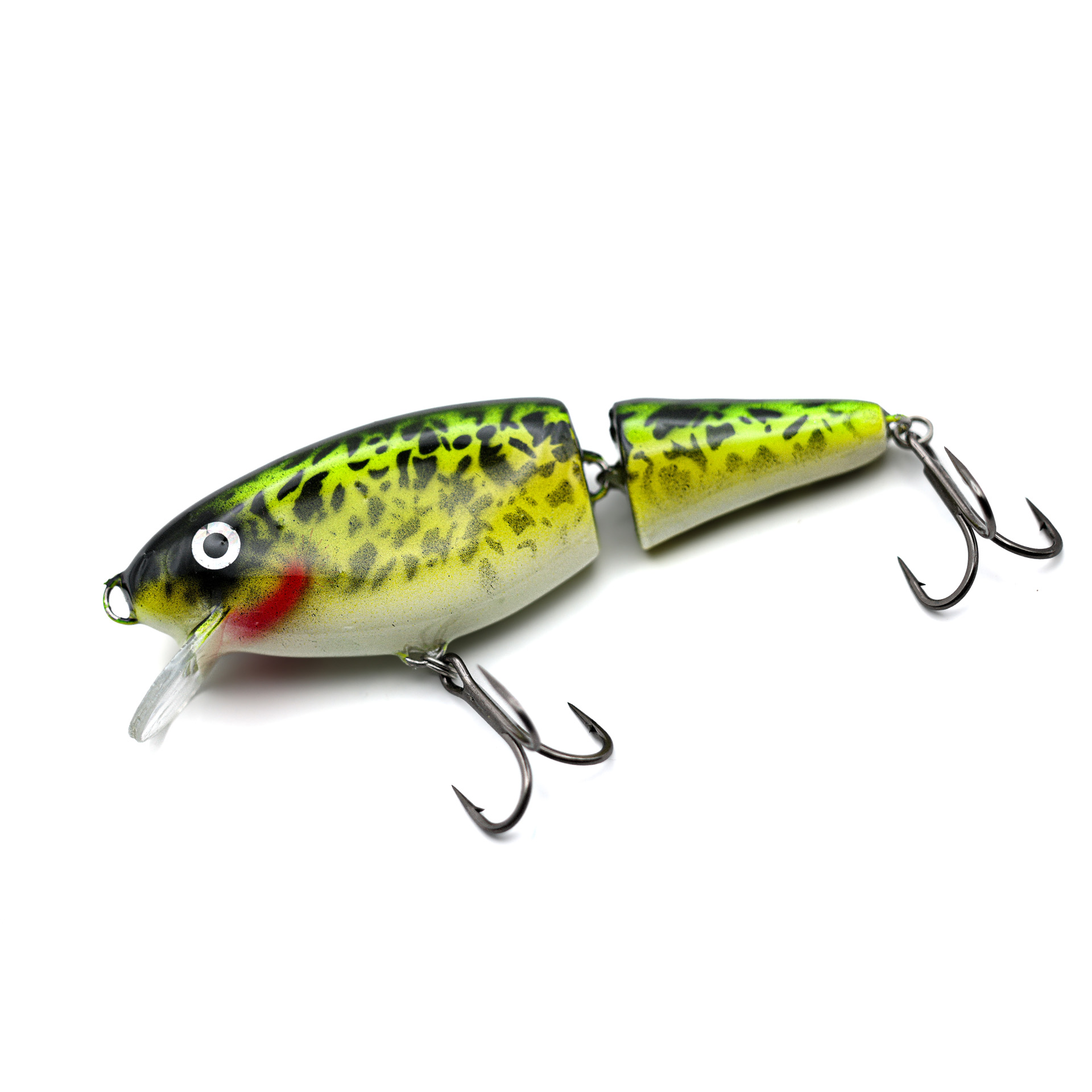 With a slimmer body and smaller bill than the Jointed Baby Chad, the Jointed Fat Shad mimics a more realistic wounded fish. Designed with a more oval shape and a thin body, this crank bait causes hydro-ristants, making it wobble from side to side, and making the tail move erratically. Making it the perfect deep dive crank bait for anglers of all sorts to catch dormant musky.