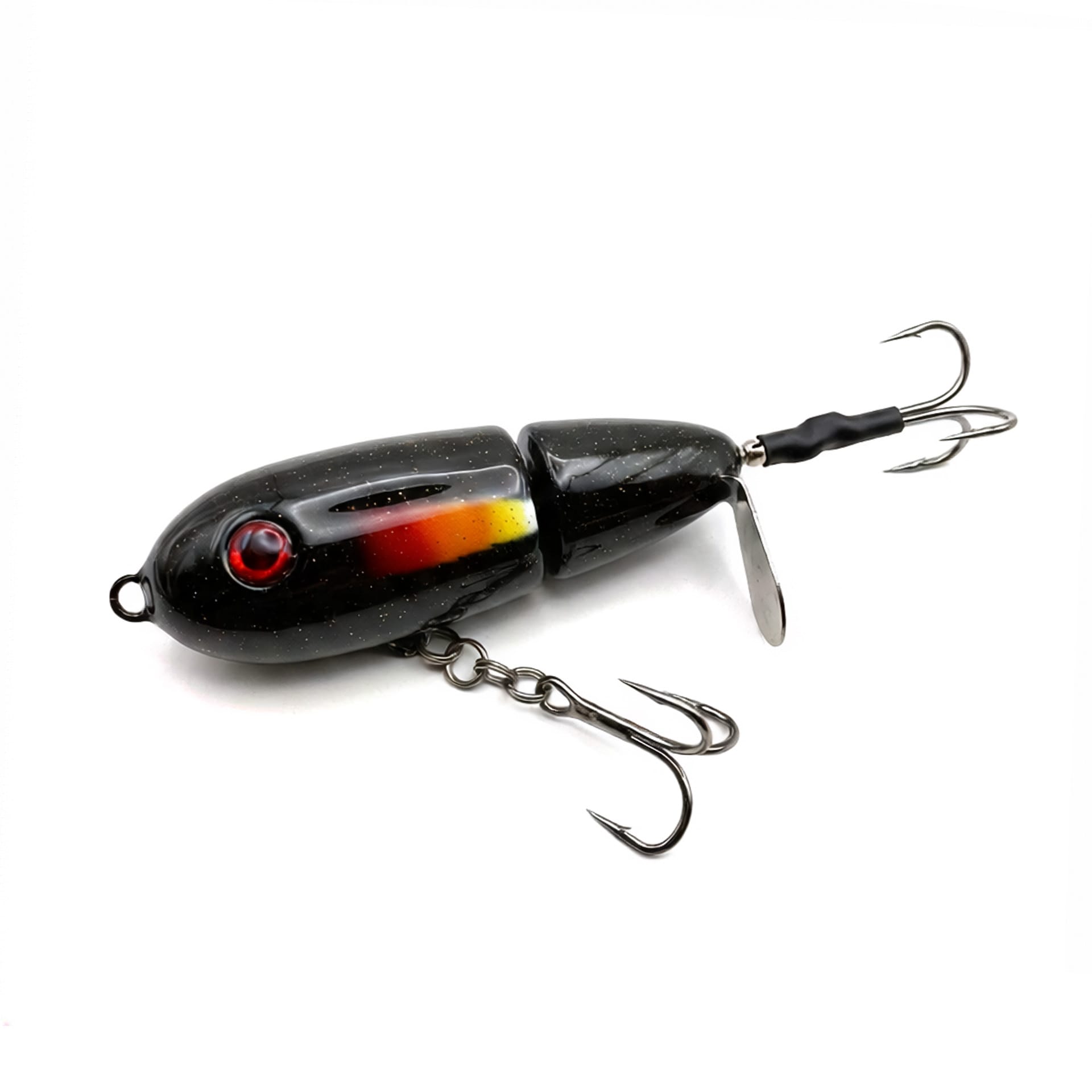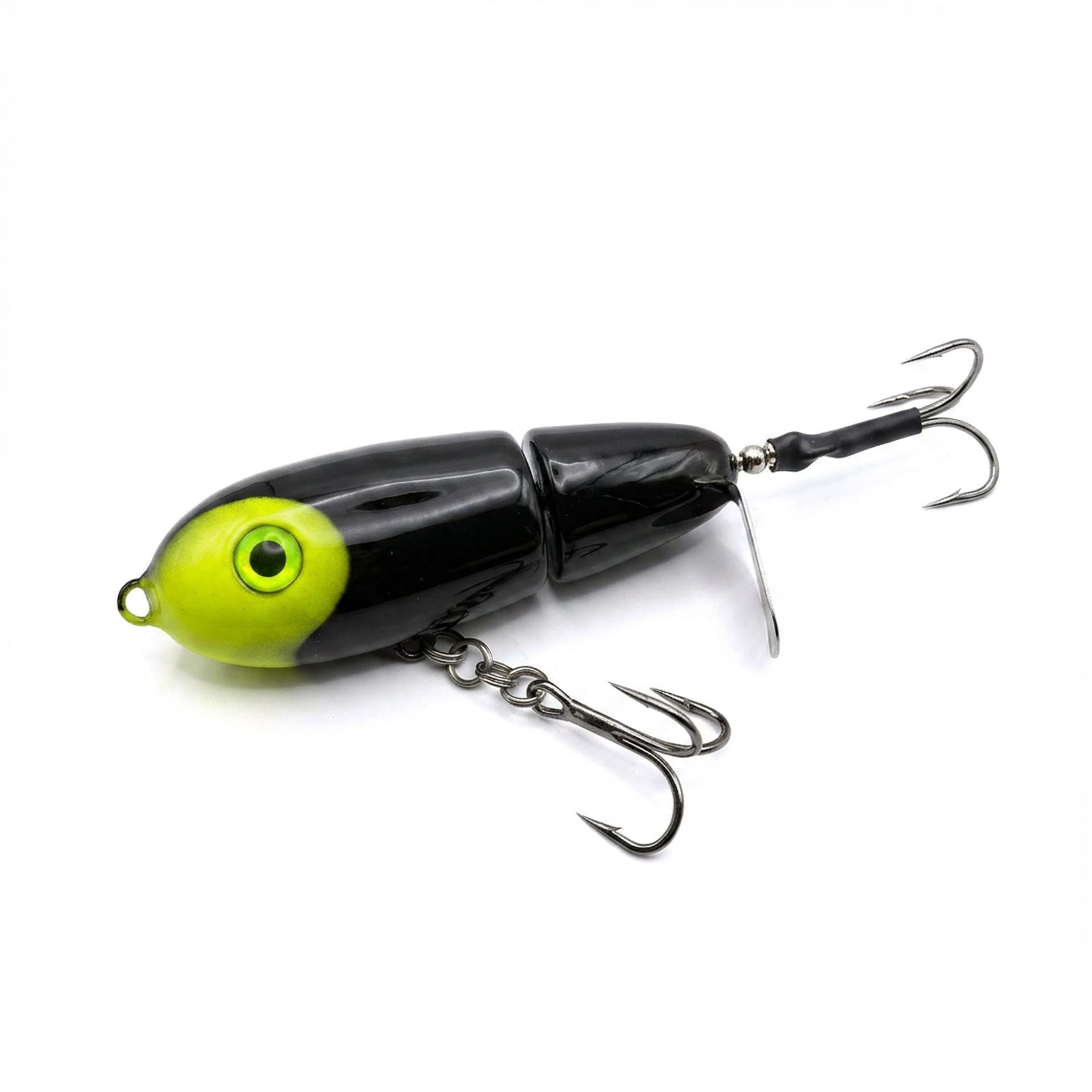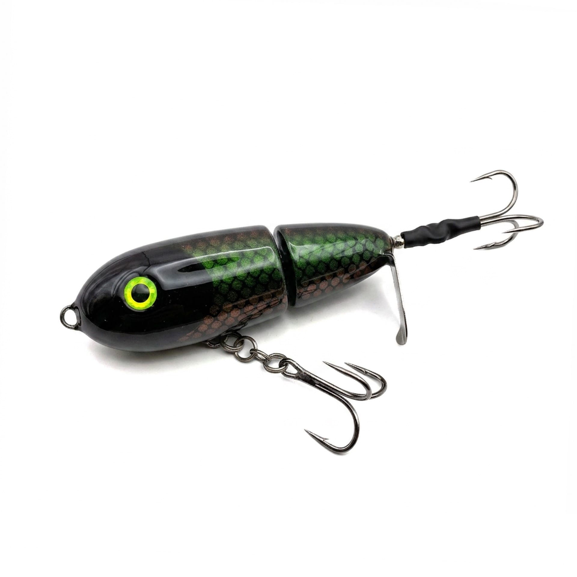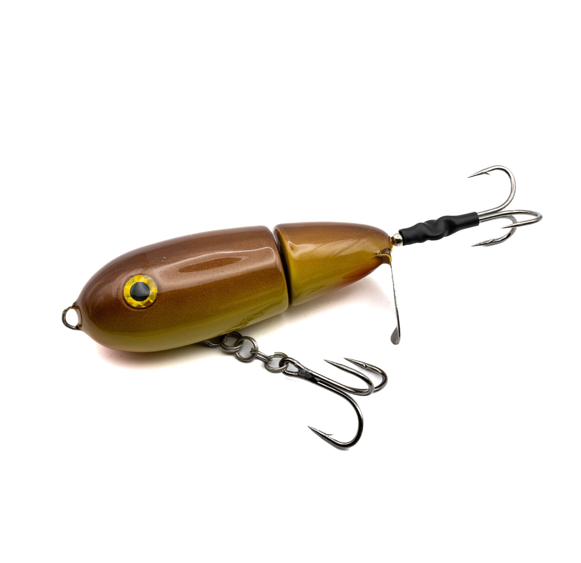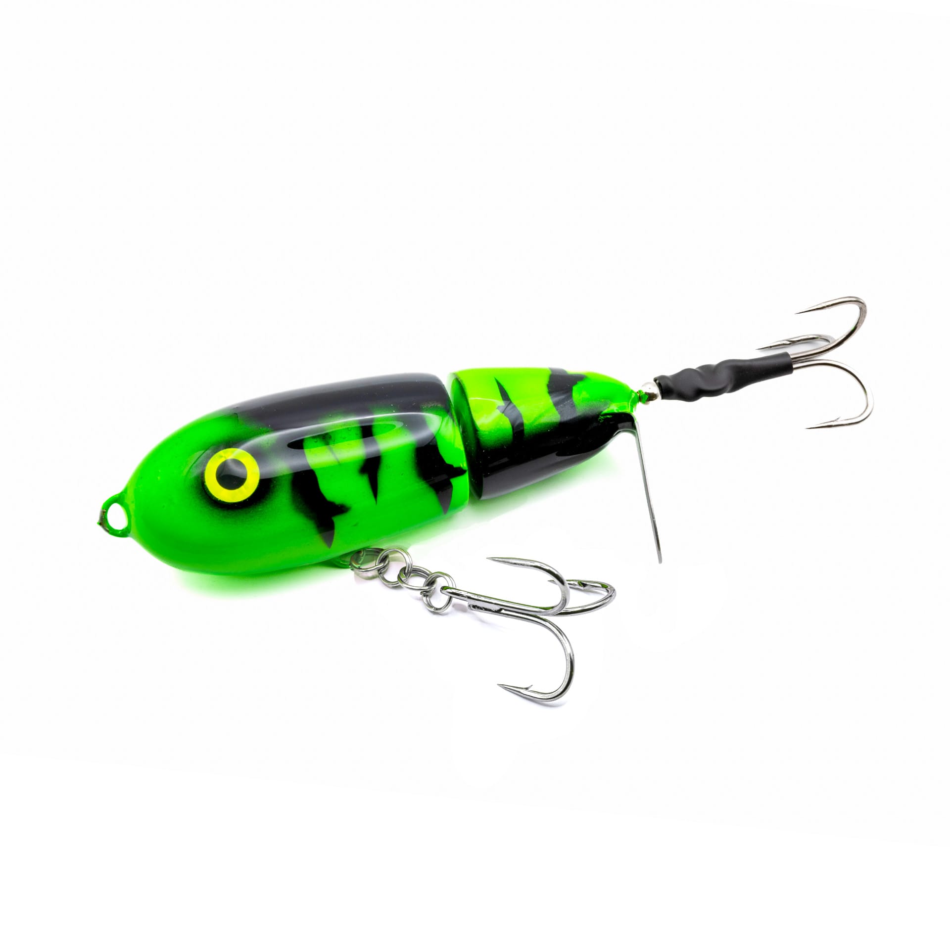 The Small Dog, as the name suggests, is a small but fearsome musky bait. This topwater prop bait has 3 split rings that create a loud, erratic prop noise that drives muskie insane. It’s been proven to have more hookup success than other prop baits, making it a key instrument in any angler’s tackle box. Jointed for action, this multi-directional bait allows for realistic movement and flexibility, making it able to withstand any challenge.